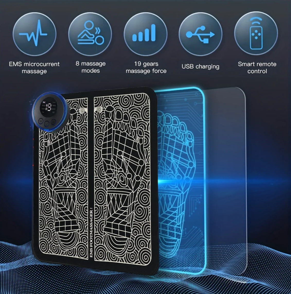 The reflexology mat is based on proven technology (Electrical Muscle Stimulation). It uses gentle electrical signals to stimulate the muscles, helping them relax and release tension, all while providing a pleasant and comfortable experience.
