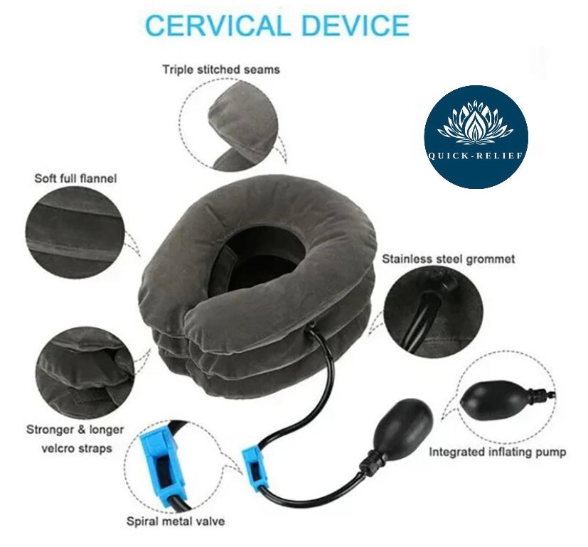 The pillow comes with a small pump that is attached to it and inflates with a press. Place the pillow on your neck and start inflating until your neck is fully straight. Stay in this position for 10-15 minutes, and repeat this process twice a week