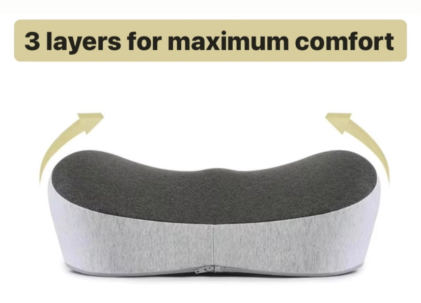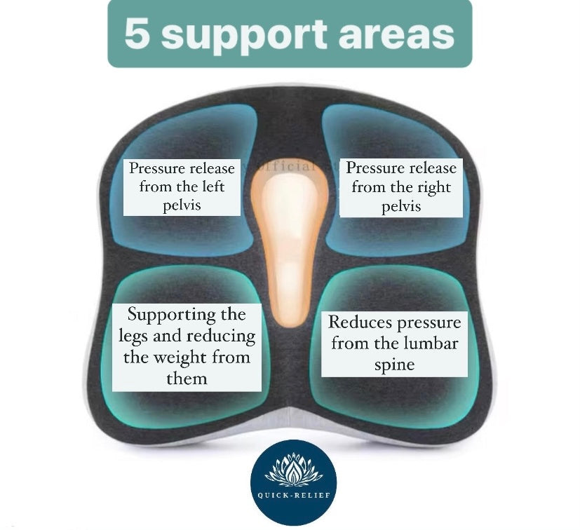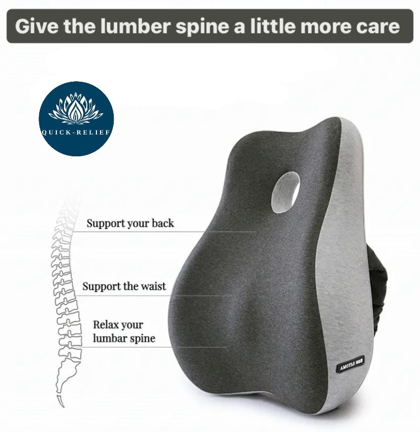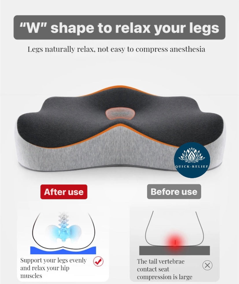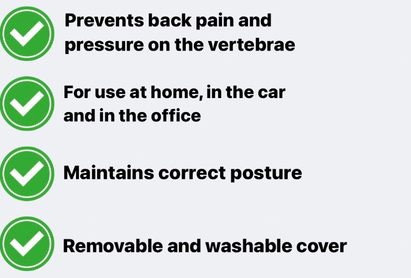 The orthopeadic pillow set prevents pressure on the lower back, pelvis, and tailbone, providing a soothing sensation to the spine thanks to the memory foam technology of the pillows.